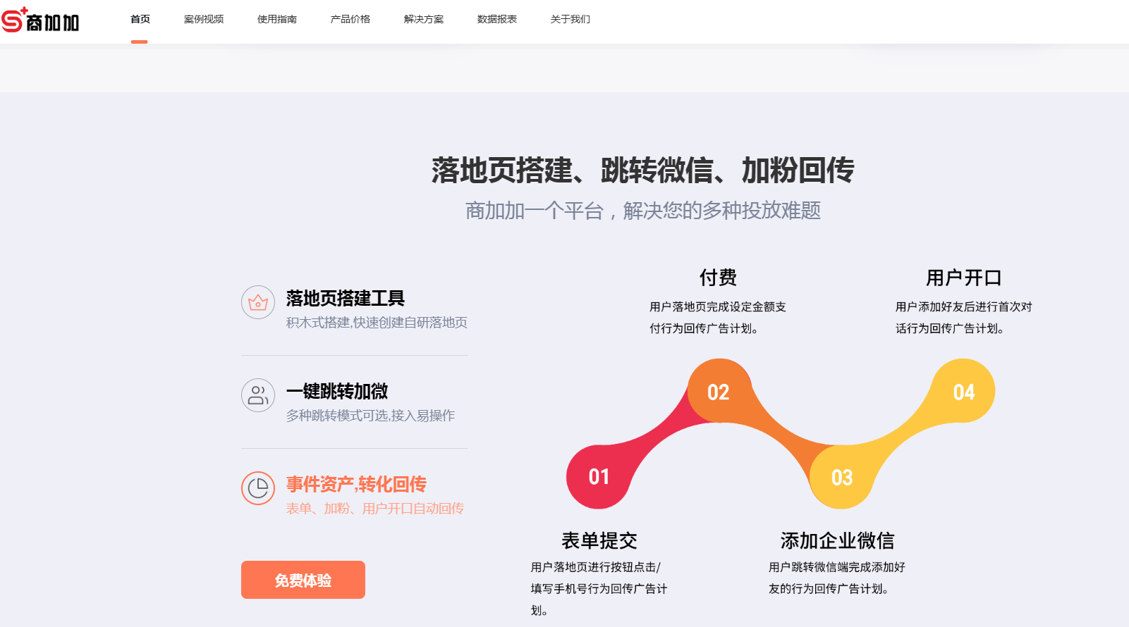 企业在运用企业微信去获取客户的时候,会遭遇到数据分散、归因困难、转化路径不清晰这类问题。倘若不能很好地对用户行为数据进行记录以及回传,那么广告投放的效果便无法得以评估,营销策略也会没有优化的依据。所以构建一套完备的数据管理体系,就变成了提升企微获客效率的关键之所在。 用户每一次进行点击广告、访问落地页、添加企业微信好友的行为,都是关键的数据节点。这些信息包含有来源渠道、访问时间、停留时长、是否完成加粉等等情况,从而构成完整的用户旅程。利用工具自动去采集这些行为,就能够避免人工统计时出现的遗漏和误差。比如说在抖音或者朋友圈广告里面嵌入跳转链接之后,系统得要能够识别出用户是来自哪个广告计划、哪个创意素材,为后续的分析做好准备。 这会儿,商加加的外链就发挥出重要的作用。当用户点击广告进入落地页的时候,它就可以立刻去绑定渠道参数。并且当用户完成加好友这个动作之后,它能够精准地记录下整个转化的路径。这样的一种能力就确保了数据源头的真实以及完整。 原始的数据所具备的价值并不是特别的大。必须得将它转化成为直观的图表,这样才可以快速地拿来进行决策。优良的数据管理工具得能够把加粉量、转化率、渠道 ROI 这类核心指标运用折线图、柱状图等等进行动态的展示出来。团队里的成员不需要去深入地探究后台代码,就可以一下子看出来哪一种广告素材的效果更为良好、哪一个时间段用户的活跃度更高。 企业利用商加加的外链,能够获取到结构化的行为日志。并且还可以在后台的仪表盘当中查看多维度的数据看板。举例来说在某一回推广活动之中,A渠道存在200次的点击情况但是却仅仅只有5个人进行了加粉,B渠道点击了100次却有30人成功地添加了(粉),像这类对比的数据就展现出了人群精准度的差异情况,从而为预算的分配提供相应的依据。 广告的相关平台,例如像巨量引擎、腾讯广告这一类的平台,是依靠把回传的数据来对算法推荐进行优化的。要是企业没有将用户已经添加企业微信这个关键的转化事件反馈回去的话,那么系统就会错误地判定该广告是没有效果的,随后就会减少对其的曝光。所以数据的回传是提升广告投放效率的核心的组成部分 。 商加加的外链能够支持多种回传事件的配置。其中包含页面的浏览、加好友取得成功、首次进行聊天等等状况。当用户达成特定的动作的时候,系统便会自动地把经过加密之后的转化数据发送到对应的广告平台。如此这般既协助平台更为精准地对潜在客户开展定向工作,也使得企业拥有了更低的单粉成本。 数据管理的最终的目标就是为客户的运营来进行服务。企业借助自动化的打标这种方式,就可以根据用户的来源、行为的特征来自动地进行标签的分配。比如说在抖音上面美妆方面的兴趣很浓厚,在广点通上面是高意向的情况。而这些标签就直接同步到企业微信的后台当中。当客服人员在进行接待的时候就可以快速地知道客户的背景情况,从而就能够提供个性化的服务。 在这一个过程当中,商加加的外链乃是数据采集以及分发的关键枢纽之处。它可以确保标签规则和实际所发生的行为严格地相互对应起来。举例而言要是有用户点击了某一个促销活动的链接,系统便会自动地打上618活动 - 限时优惠的标签,如此一来就便于后续定向地推送相关的产品信息。这样一种依据真实行为所构建起来的标签体系,相较于手动去进行分类来讲,要更加地可靠、更加地高效。 结论总结: 企微获客的数据管理并非是一个孤立的部分。它涵盖了采集、呈现、回传以及应用这样的完整闭环。企业得运用专业的工具来达成全流程的自动化操作才行,可不能让数据出现断点。得精准地记录用户的行为、要实时地进行可视化的分析、要高效地回传转化事件以及要自动化地进行标签分发,只有这样才能够真正地提升广告的效率以及客户的质量。像商加加外链这类的技术工具,是构建这个闭环的关键的支撑,能够帮助企业在合规的前提之下,实现数据驱动的精细化的增长。 商加加的外链工具,已经为5000好几个广告主提供了相关的服务。有着跳转加微的技术方面的支持,落地的各式各样的模版是可以进行选择的,还有加粉转化回传以及数据留资这类的服务。要是想要了解更多案例的详细情况,那就去到商加加官网瞅一瞅吧!。